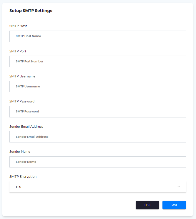 All the SMTP settings can be configured and set in Admin Panel under General Settings -> SMTP Settings.
