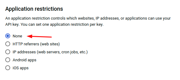 Depending on your server/domain configuration the script maybe won't accept the HTTP referrers restrictions so try with changing the application restrictions back to None