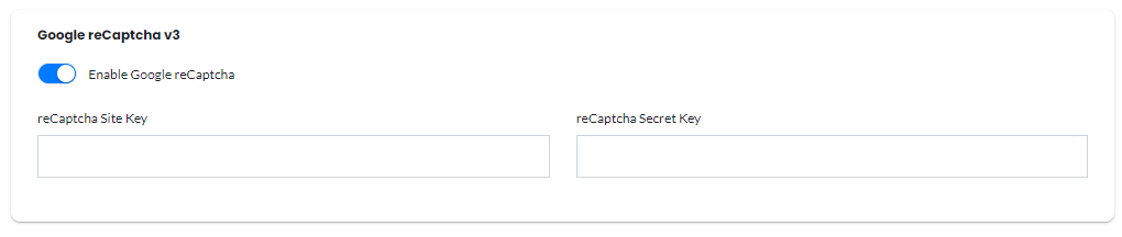 To use this feature, you will need to have reCaptcha Site Key and reCaptcha Secret Key.