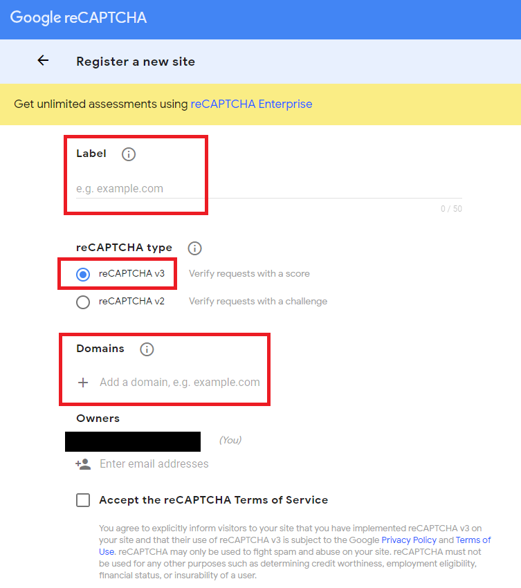 • Step 3: For reCaptcha Type, select "reCAPTCHA v3":