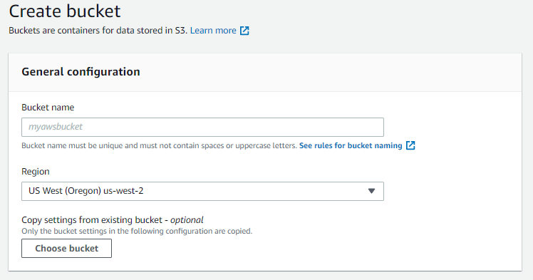 • Step 3: Enter Bucket Name and Select AWS Region where you would like to store your files and click Next. Note: Bucket name must be unique at a global level.